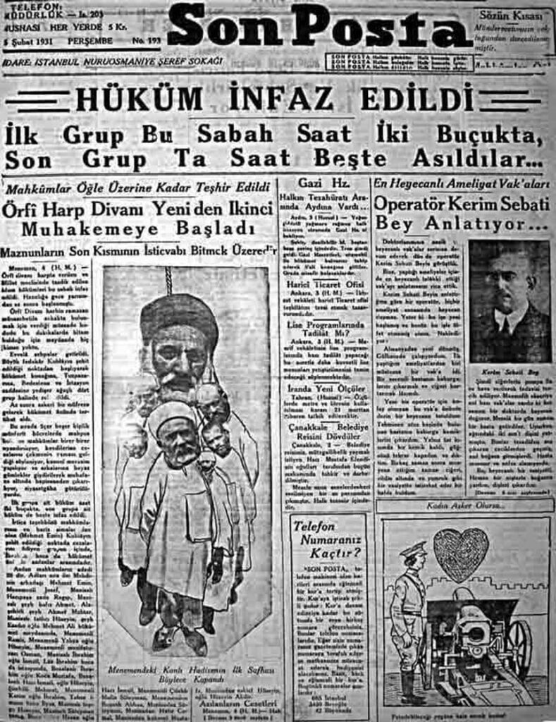 Son Posta ve Yarın gibi gazeteler, hükümet aleyhindeki tüm olumsuz unsurlara cesaret vermek ve ne pahasına olursa olsun mevcut hükümeti düşürmek için kamuoyunu bozmuşlardır. Bu gazeteler, “Hükümetten korkulmaz” düşüncesini yayarak olayları körüklemiştir. Bu nedenle, bu gazetelerin sorumlu müdürleri Divan-ı Harp’te yargılanmalıdır.